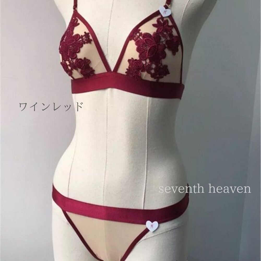 花柄刺繍とシースルーがセクシーなブラショーセット/4色